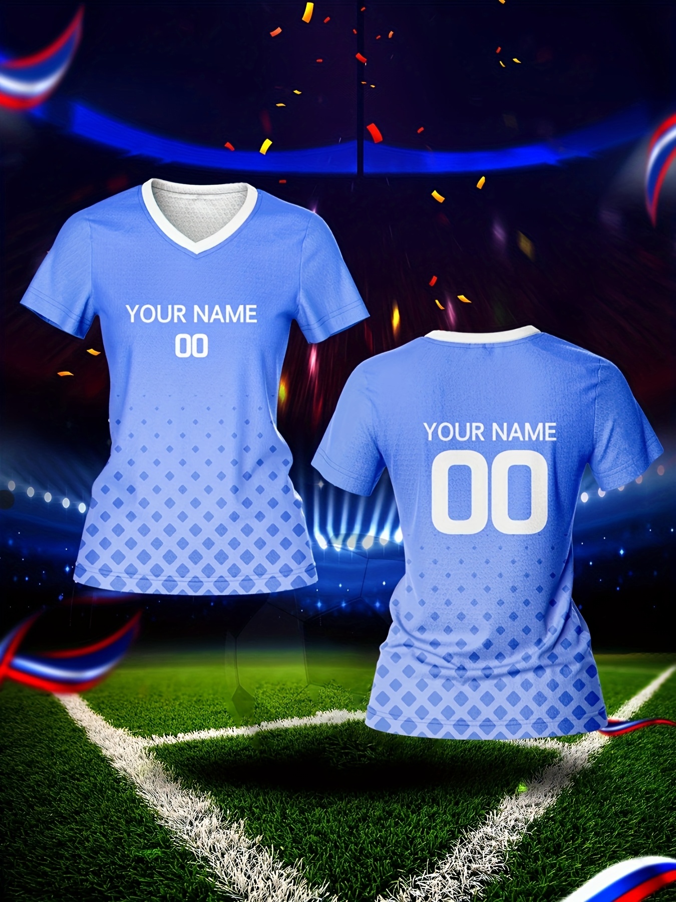 Customizable Women's V-Neck Football Jersey - Light Blue, Personalized Name & Number, Breathable Polyester, Quick-Dry for Sports, Training & Casual Wear
