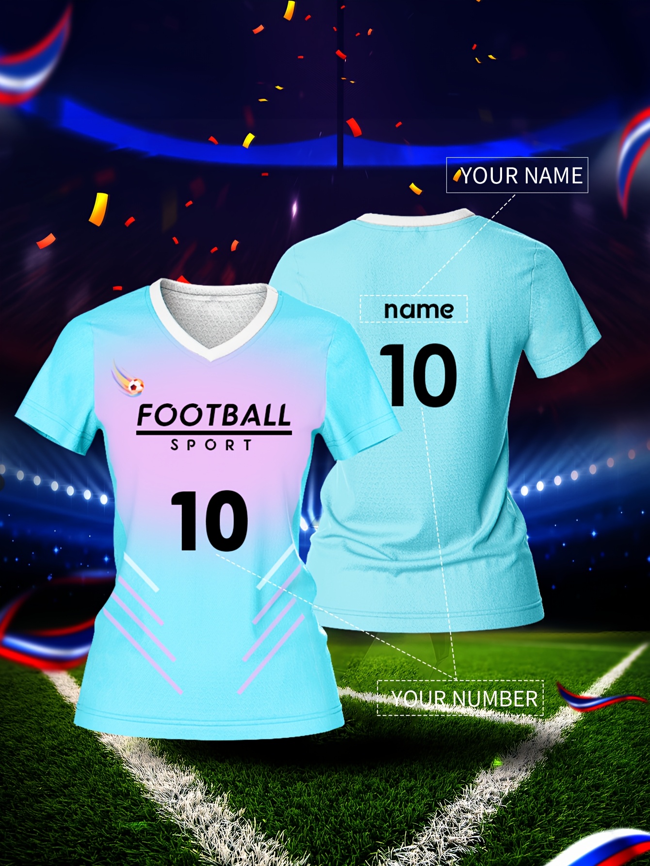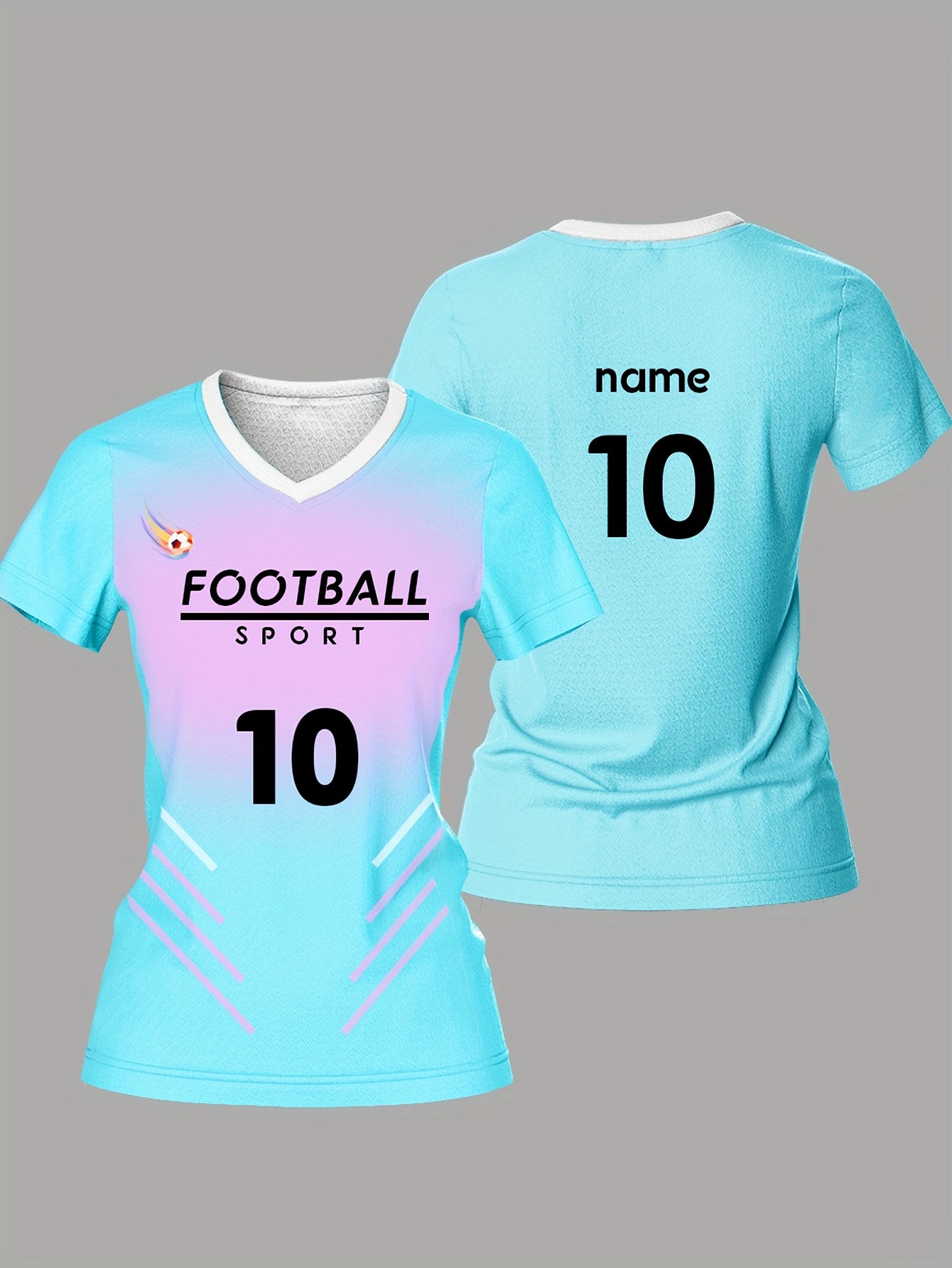 Customized Name & Number Women's V-Neck Football Jersey - Breathable Quick-Dry Moisture-Wicking Fabric, Team Training & Casual Wear, Light Blue with Black Number Print, Spring Summer Fall Sports Apparel, Breathable Fabric