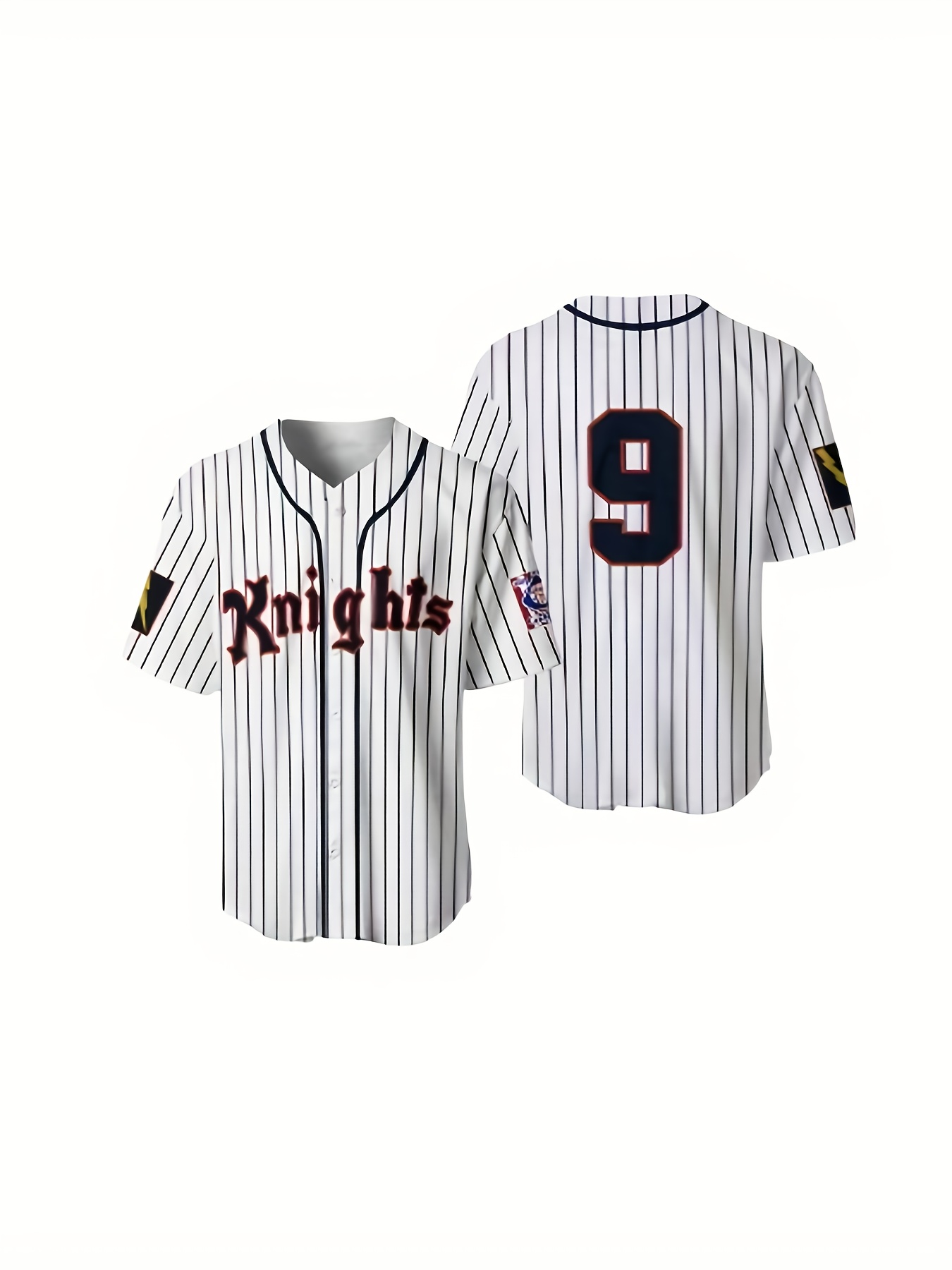 Men'S White Striped # 9 Baseball Shirt, Classic Letter Embroidery Design, Button Style Short Sleeved Breathable