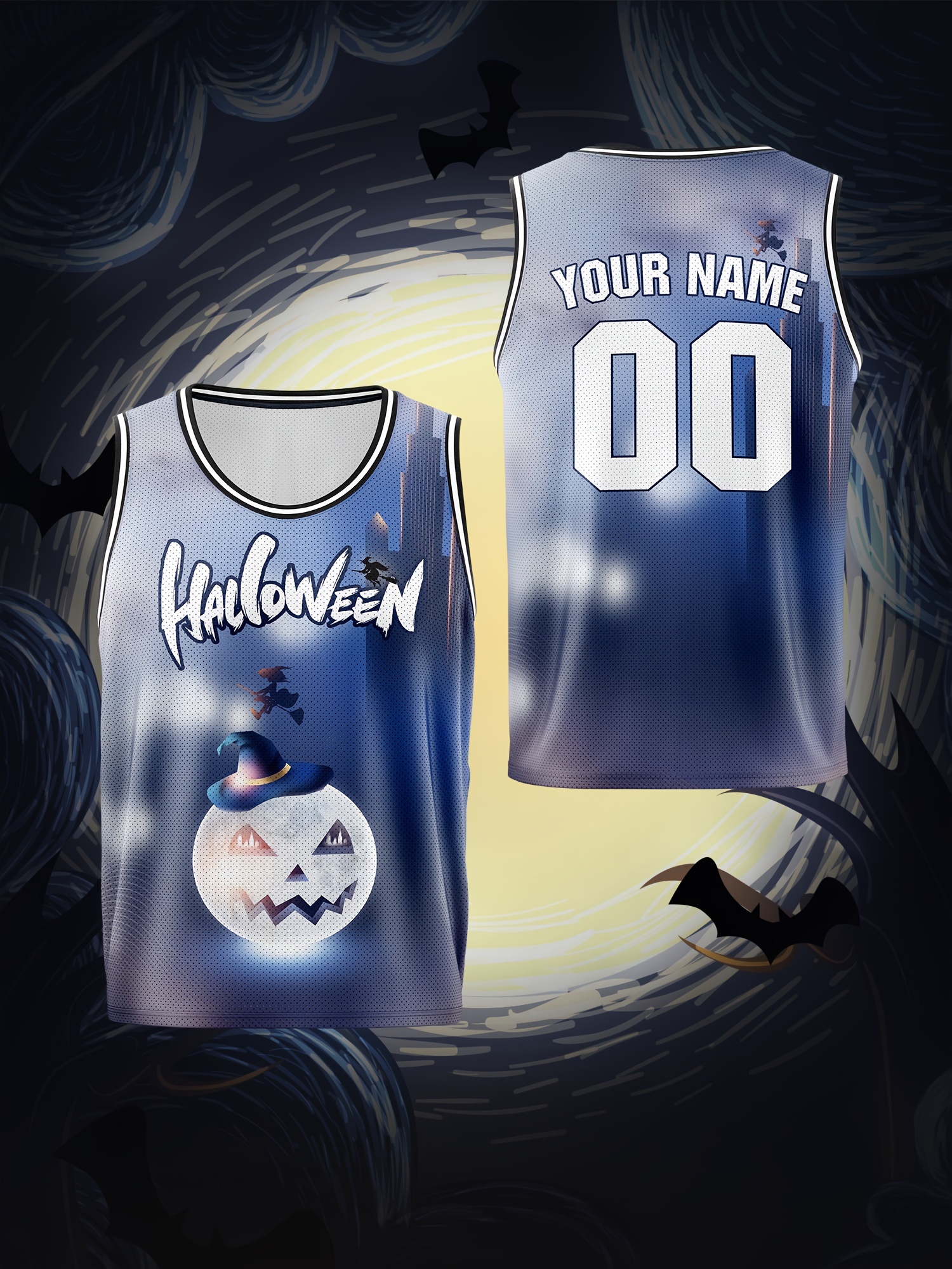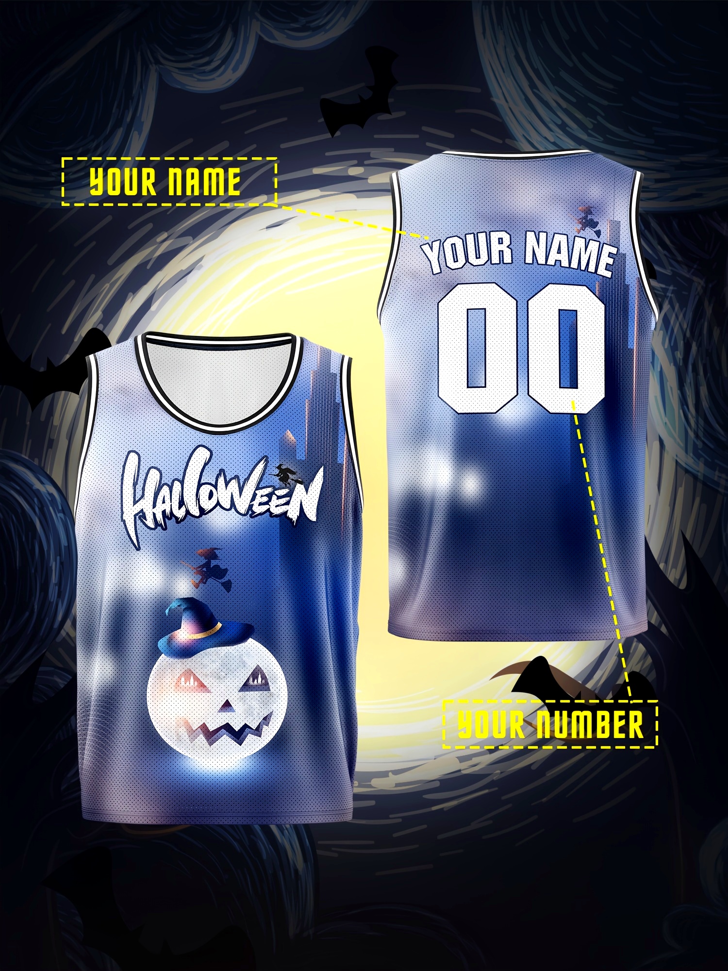 Boys' Customizable Name & Number Halloween Basketball Jersey - Polyester, 100% Polyester Breathable Sports Vest, Kids All-Over Print Tank Top for Training, Running, Outdoor Activities, Casual Parties, Loose Fit for Children Over 3 Years Old