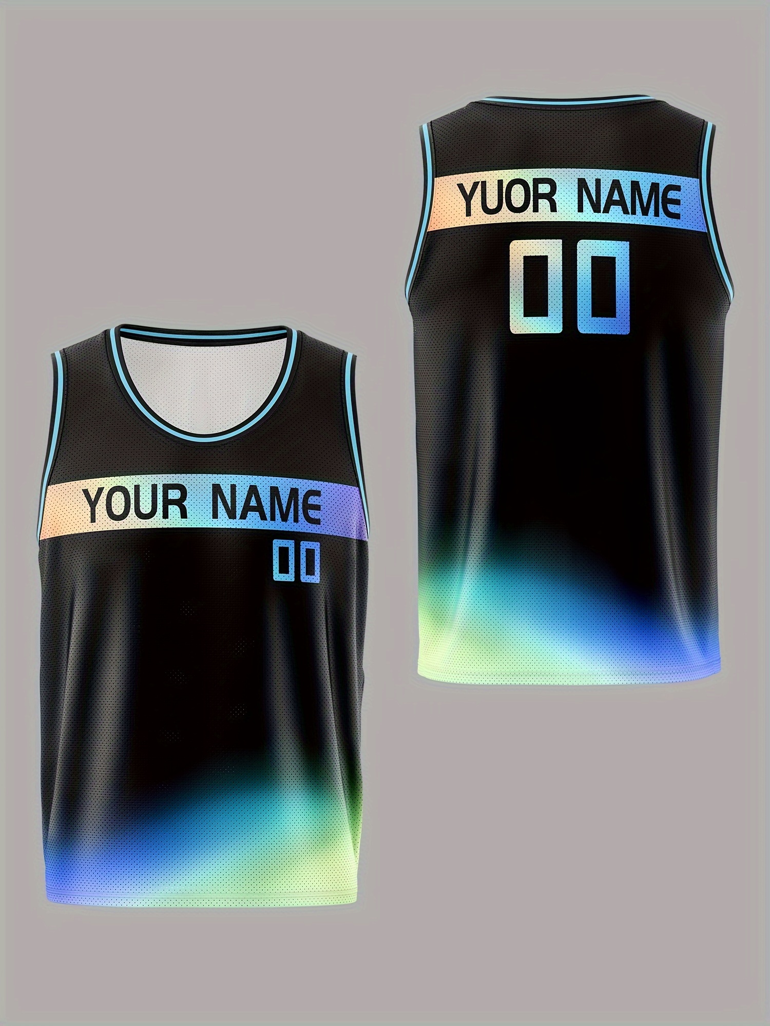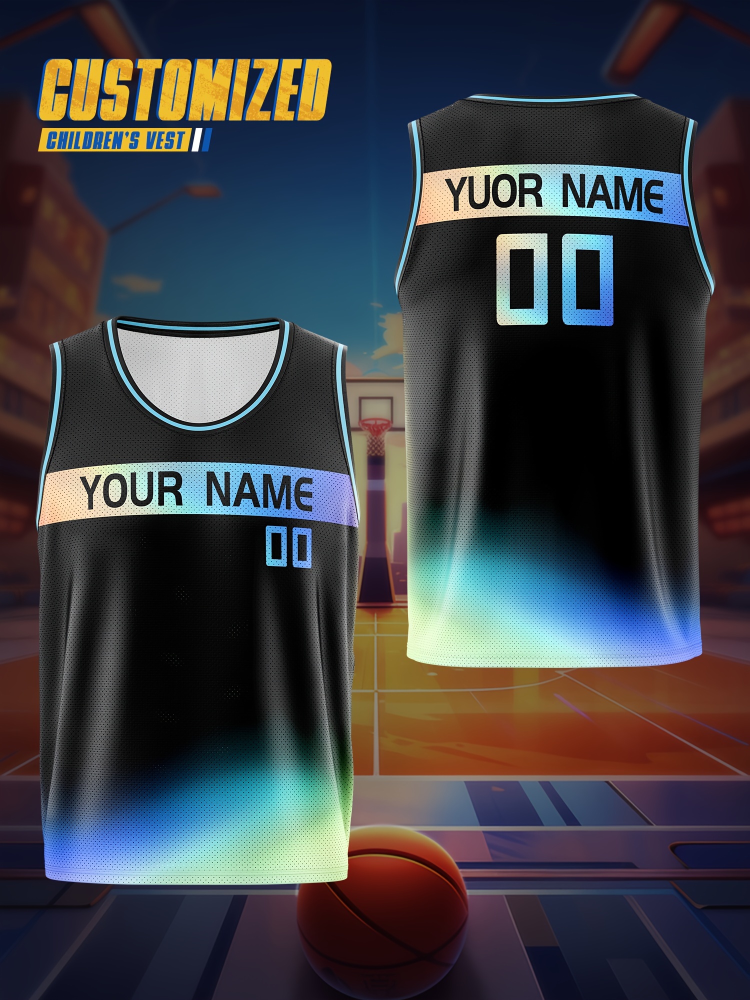 Boys Loose & Breathable Custom Sleeveless Basketball Jersey Shirt, Personalized Gradient Color Top For Sports & Exercise