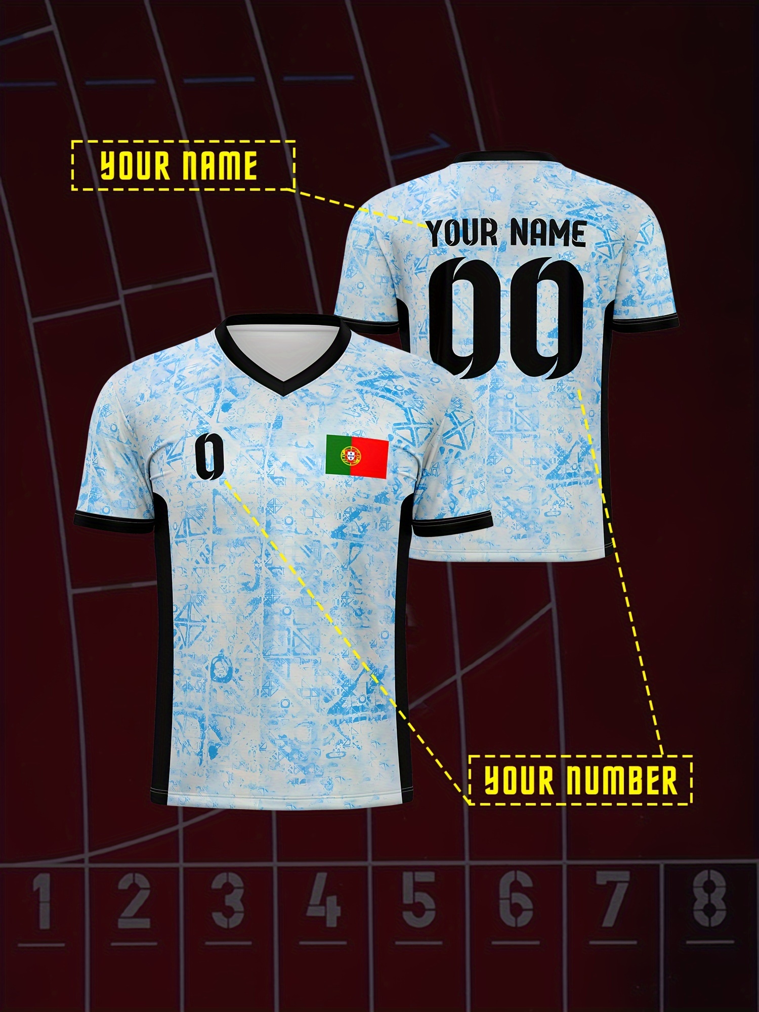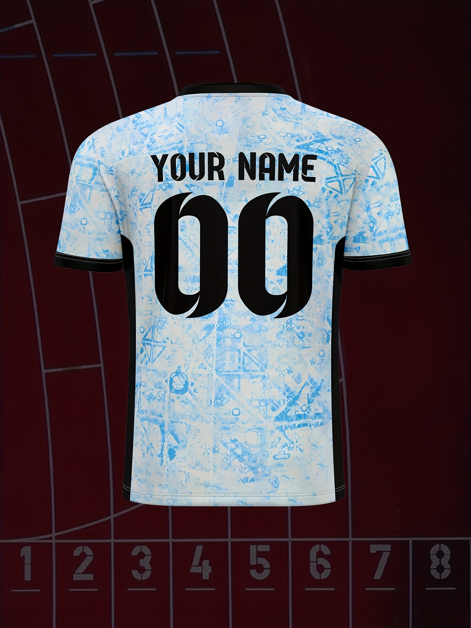 Customizable Youth Soccer Jersey - V-Neck Athletic Top with Name & Number, Light Blue & White Pattern, Breathable Fabric for Soccer, Running, Beach & Casual Wear, Soccer Accessories, Soccer Player Gear, Sporty Youth Design, Comfortable Fit