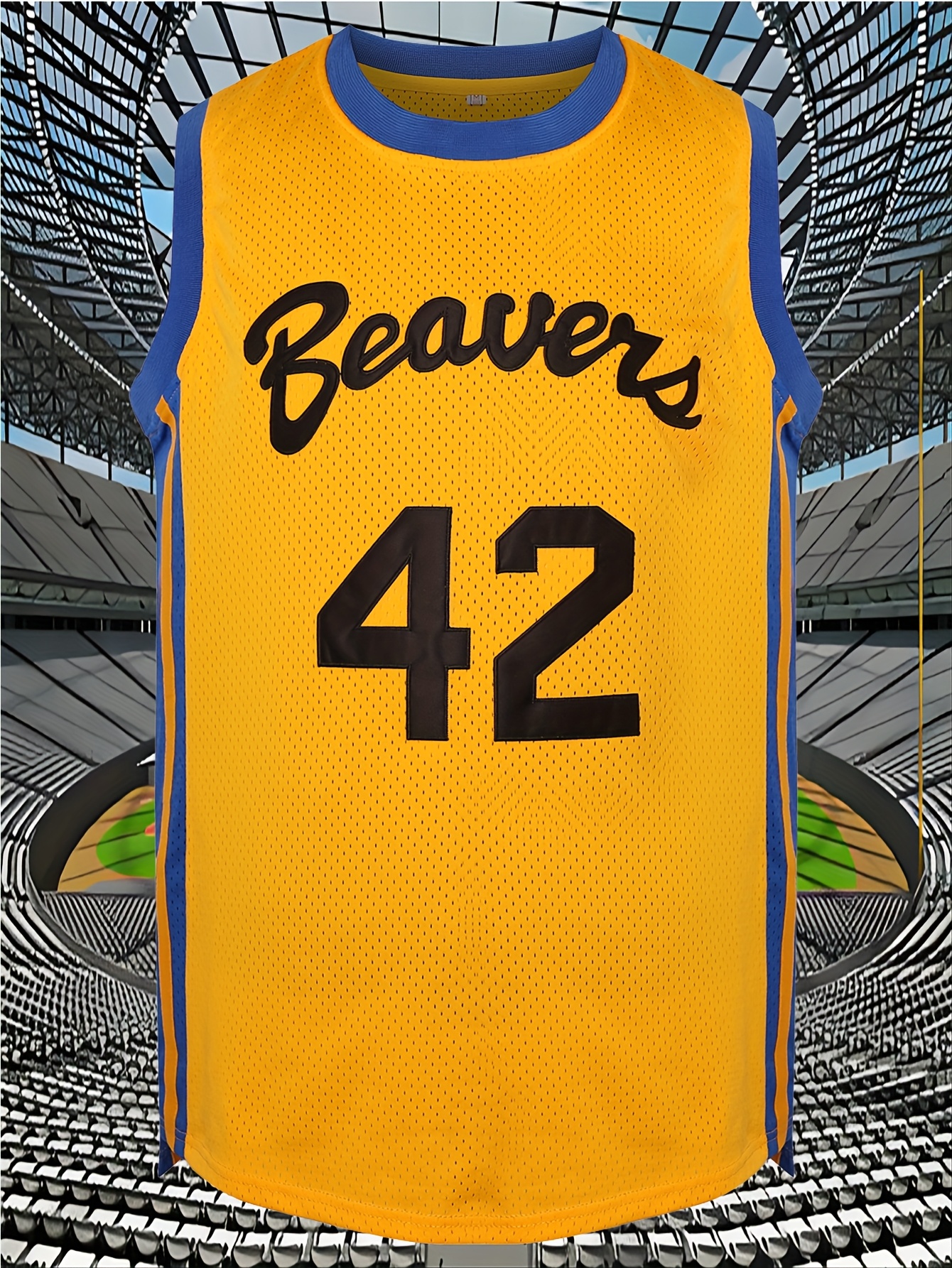 Men's #42 Yellow Basketball Jersey - Breathable Embroidered Polyester, Round Neck, S-3XL, Perfect for Team Sports, Casual Wear, and Outdoor Activities, Team Sports Clothing | Bold Number Design | Embroidered Detailing