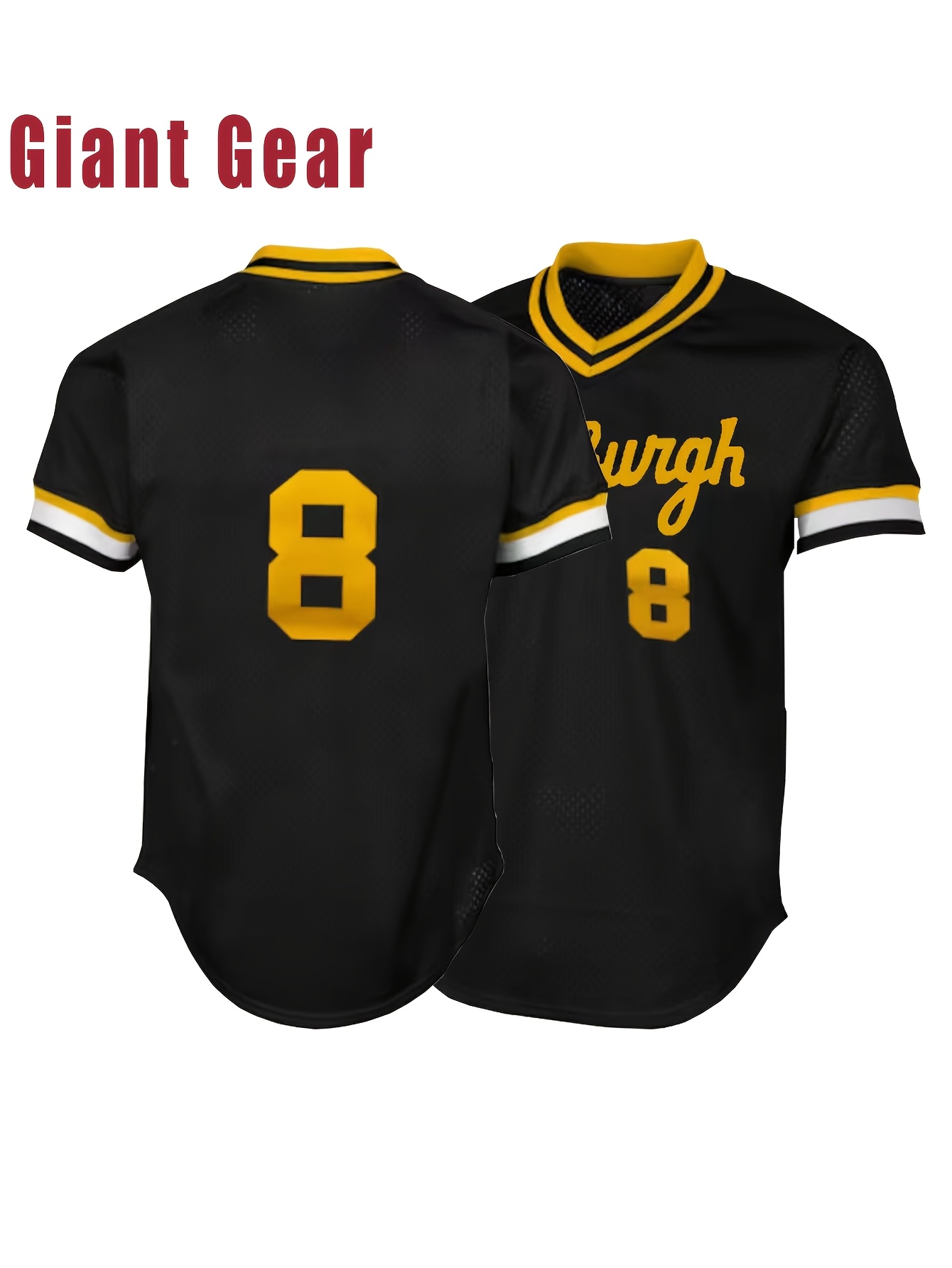 Men's #8 Black Baseball Jersey - Breathable Polyester V-Neck Loose Fit with Embroidered Number 8 & Golden Accents, Machine Washable for Team Sports, Training, Casual Outings (Sizes S-3XL)