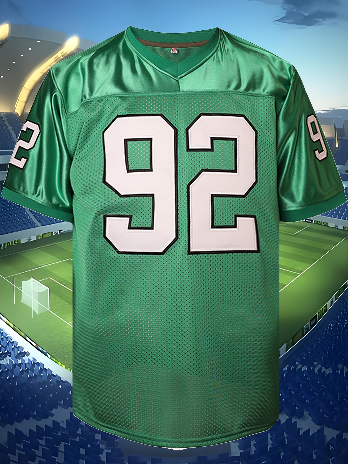 Men's Retro #92 Green Football Jersey - Classic Embroidered, Breathable Polyester V-Neck Sports Shirt with "PHILADELPHIA" Print for Team Sports, Casual Wear & Themed Parties, Football Shirt