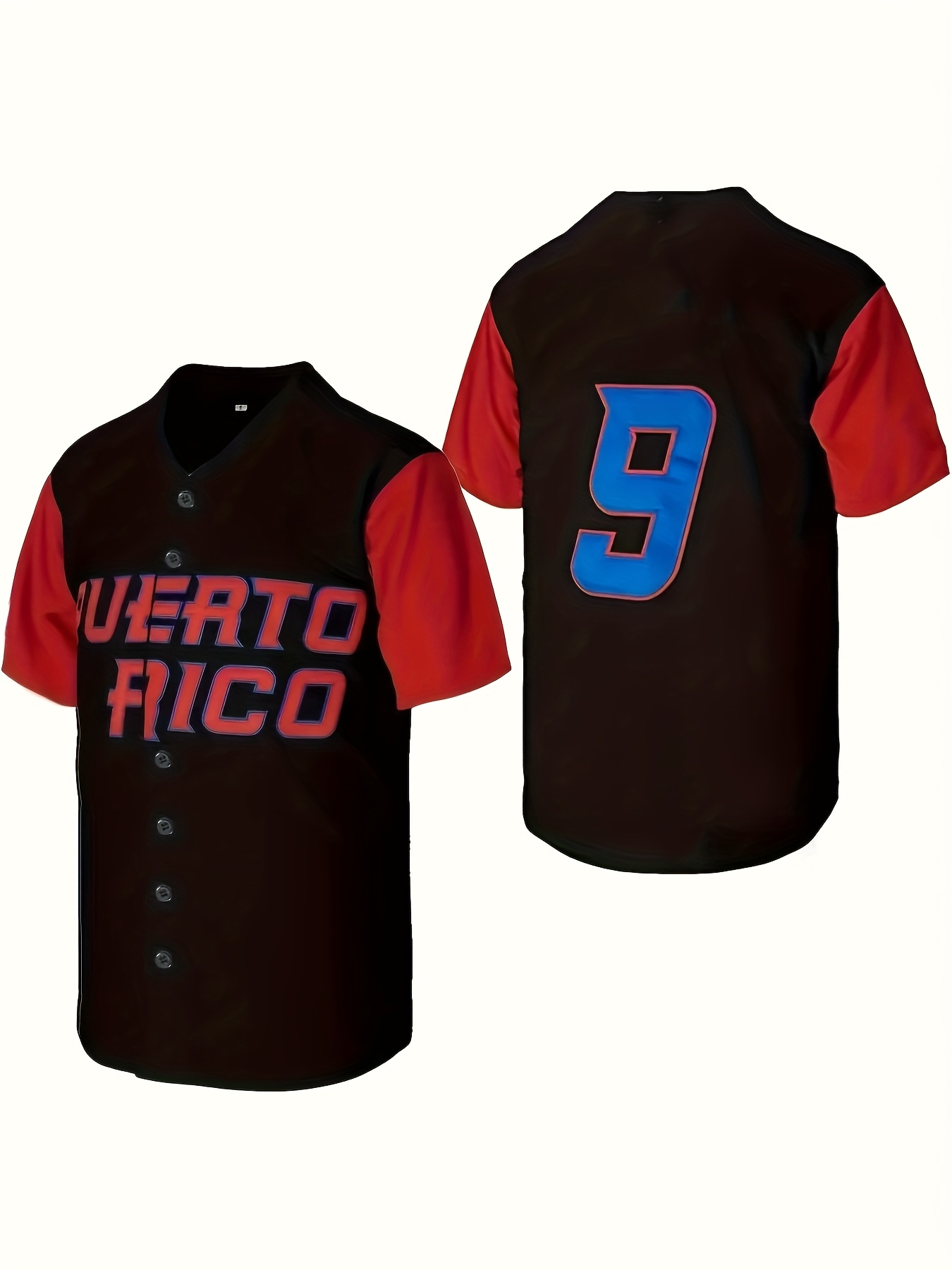 Men'S Puerto Rico #9 Embroidered Baseball Jersey Vintage