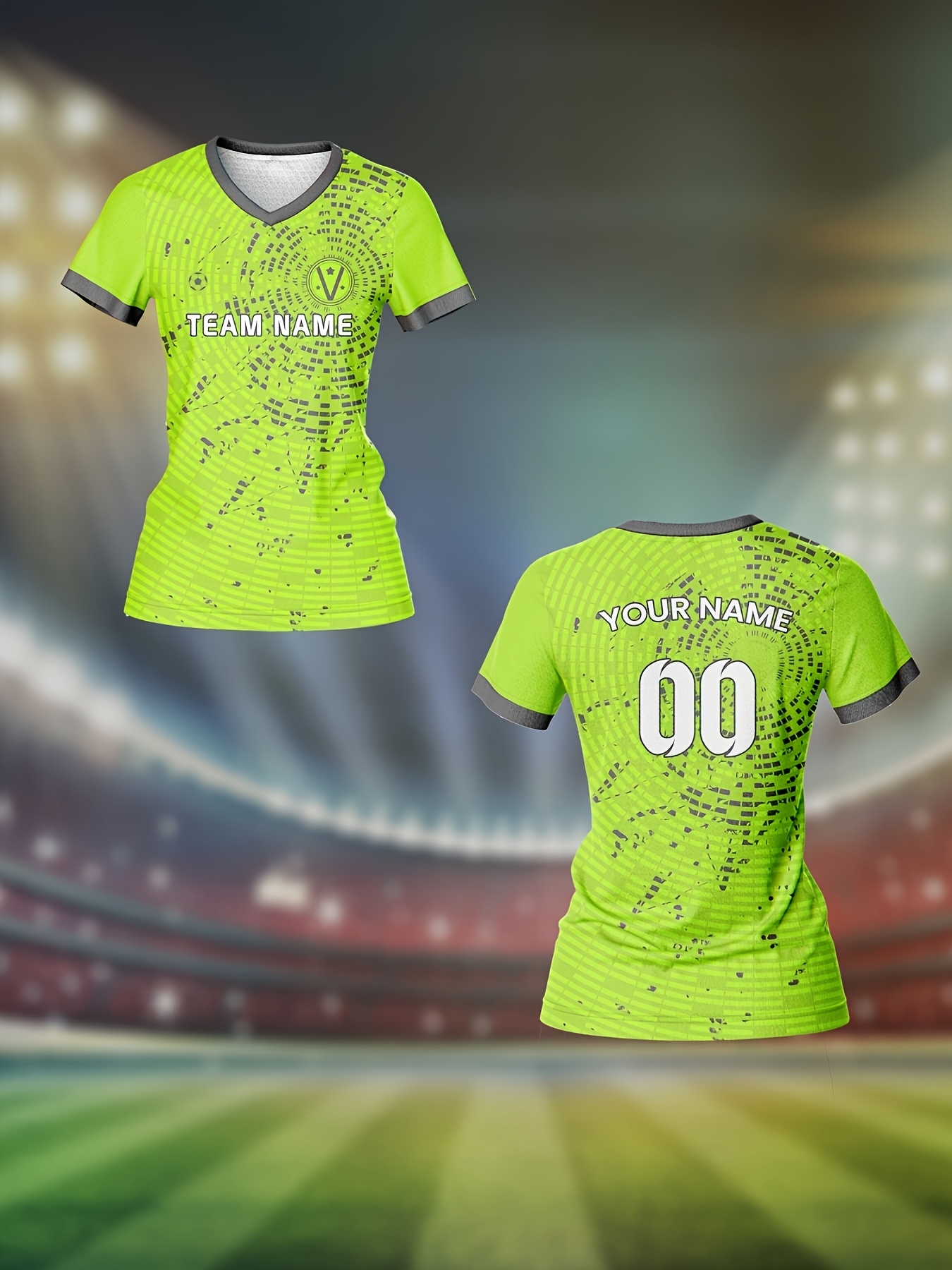 Custom Women's V-Neck Football Jersey - Personalized Name & Number, Lime Green with White Splatter Design, Breathable Moisture-Wicking Quick-Dry Fabric, Loose Fit for Team Training, Fitness & Casual Wear, Sports Training Gear, Comfortable Sports Apparel