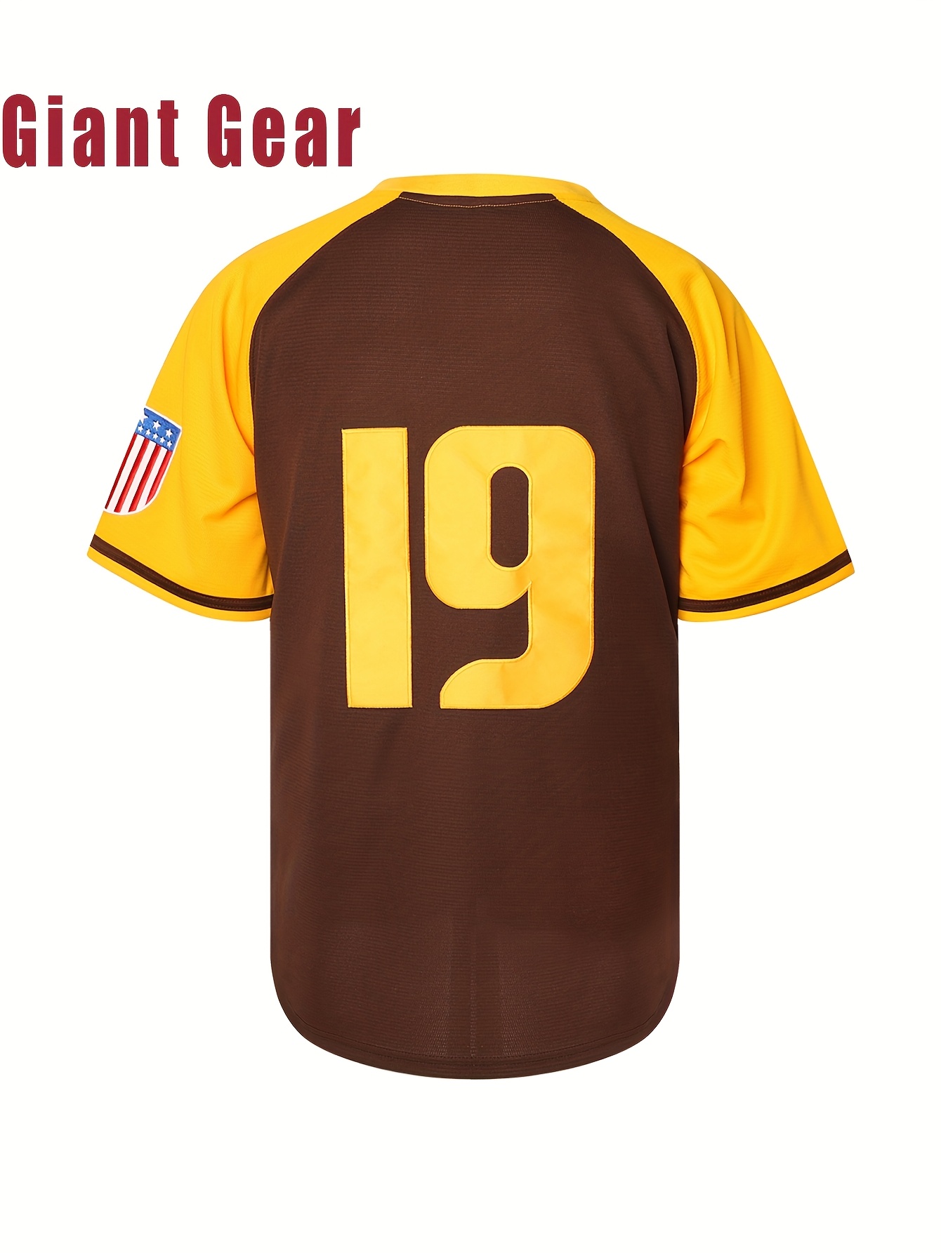 Men's #19 Brown Baseball Jersey with San Francisco Lettering & American Flag Patch - Loose Fit V-Neck Pullover for Training, Team Sports, Casual Wear (Sizes S-3XL), Outdoor Activity Clothing | Sporty Vneck Style | Durable Sportswear