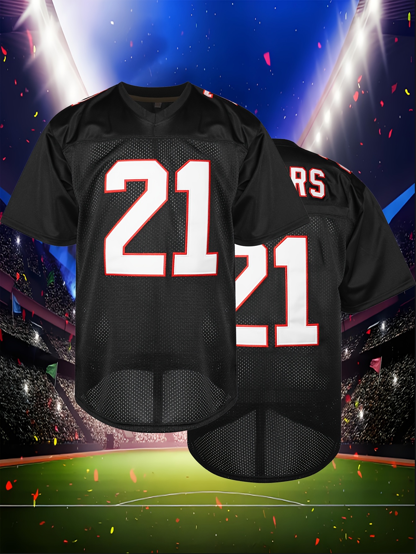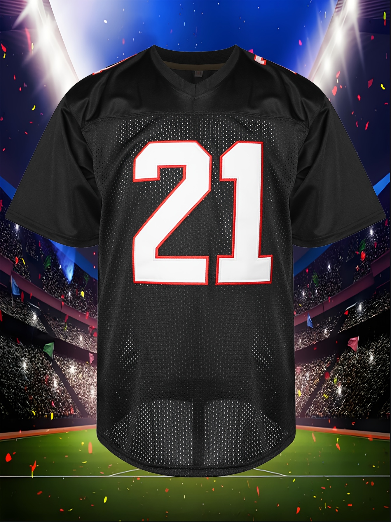 Men's #21 Black American Football Jersey - Breathable Polyester, V-Neck, Sports Uniform for Team Sports & Casual Wear, Sizes S-XXXL