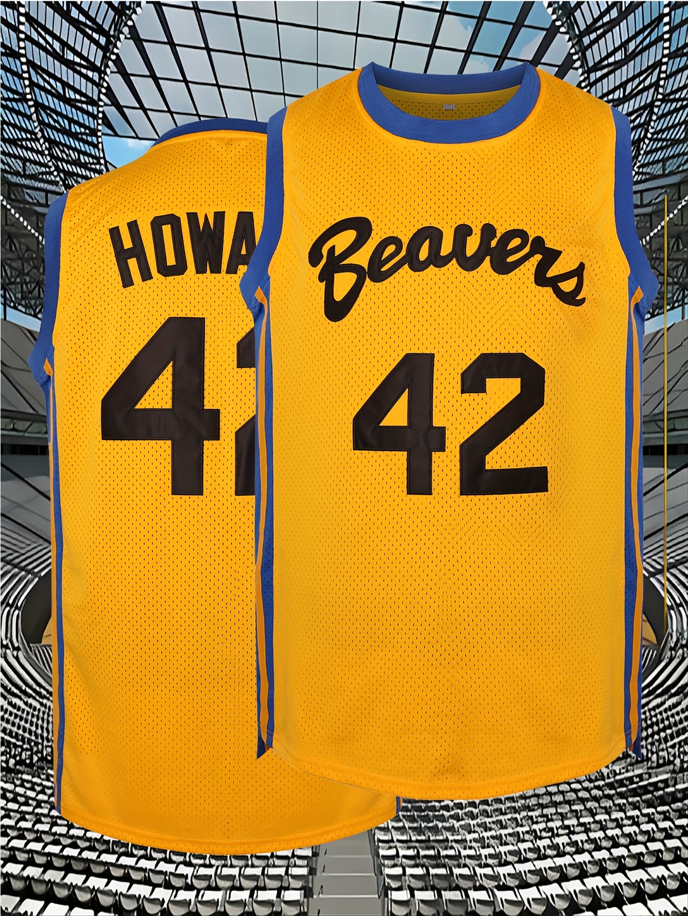 Men's #42 Yellow Basketball Jersey - Breathable Embroidered Polyester, Round Neck, S-3XL, Perfect for Team Sports, Casual Wear, and Outdoor Activities, Team Sports Clothing | Bold Number Design | Embroidered Detailing