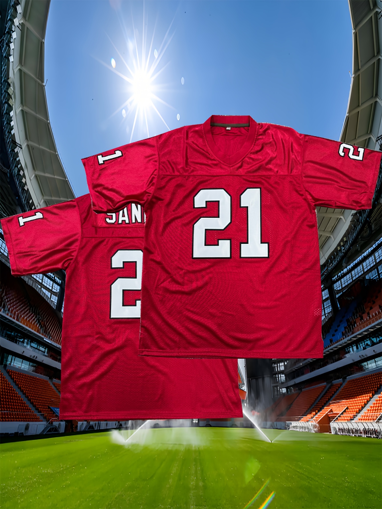 Men'S Rugby Shirt # 21 Red Embroidered Rugby Shirt Loose Fit Polyester Knitted - Perfect For Casual And Sportswear Machine Washable - Sizes From S To XXXL