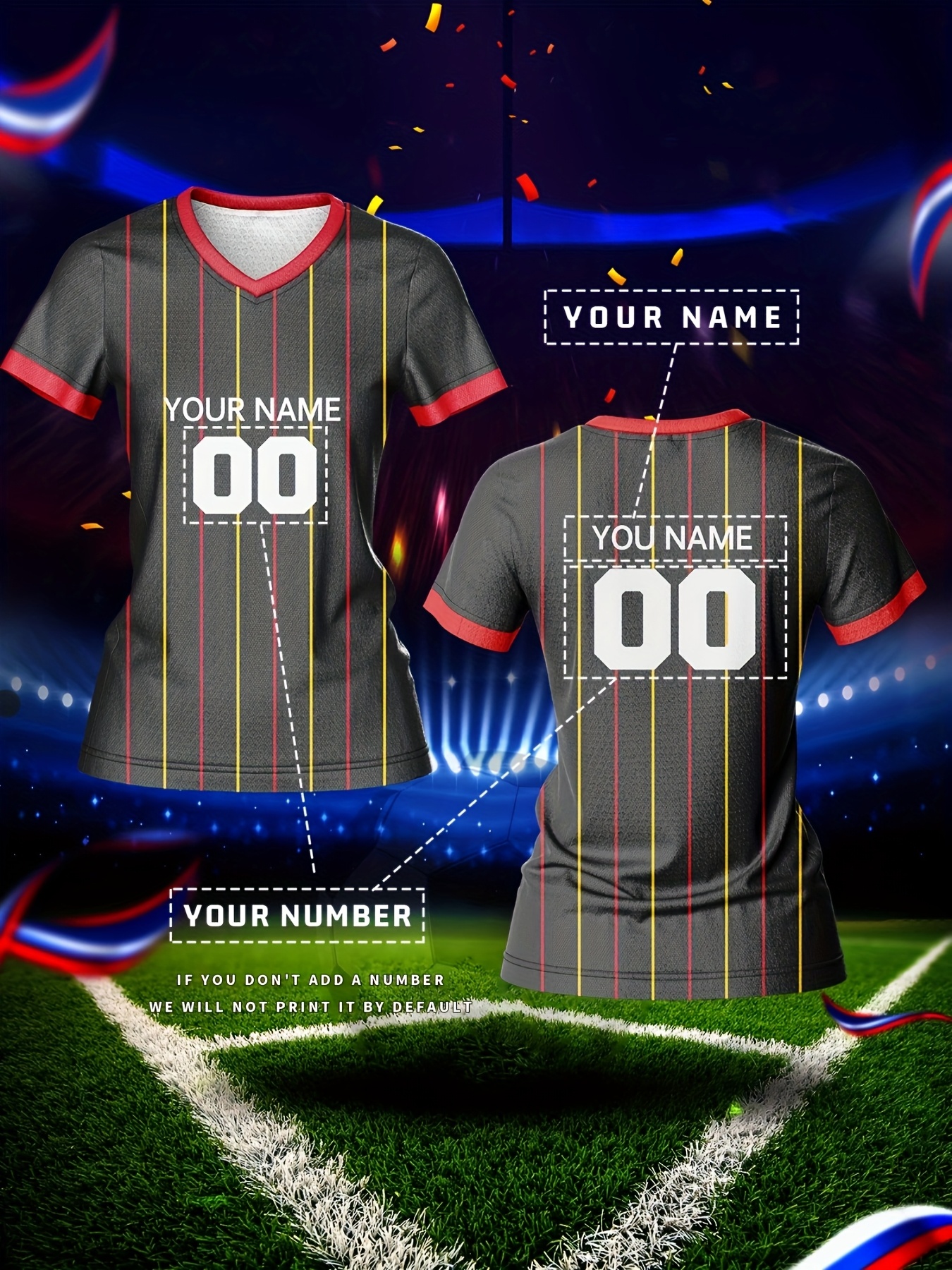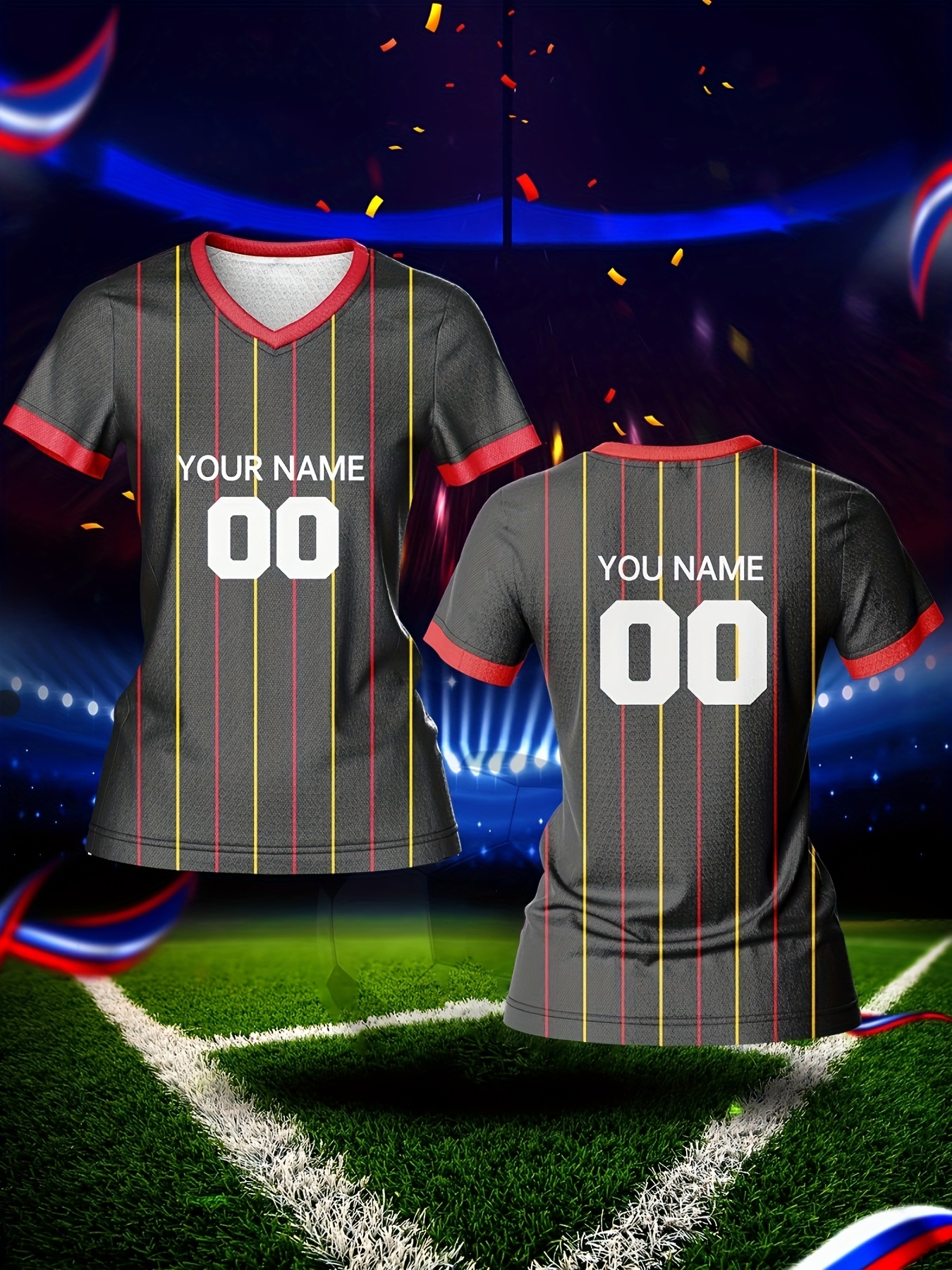 Outdoor Adventures | Customizable Women's V-Neck Football Jersey - Personalized Name & Number, Breathable, Quick-Drying Polyester Sports Top for Team Training, Casual Wear & Light Activities